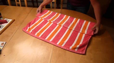 - Next, fold the towel in half again, bringing the left side over to the right side.